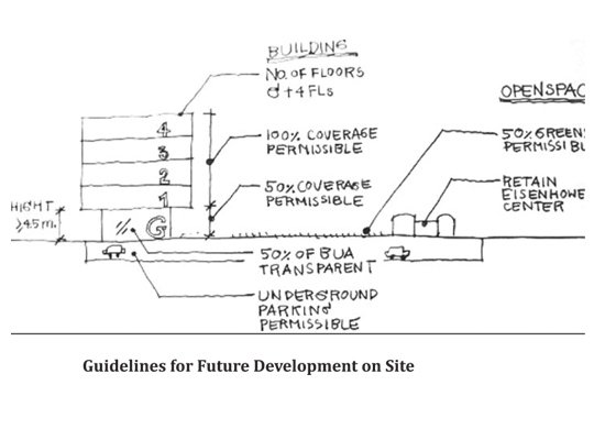 The proposal then suggested making a new intervention which comprised three pronged programmatic: incubator offices, place for interaction and open/ green space. The defunct Alfred Place Street was chosen as the site for this intervention, which was currently used inefficiently as parking or service area, whereas it enjoyed high level of connectivity, prominent location and interesting history, which together provided it potential to play a better role in the city urbanism.