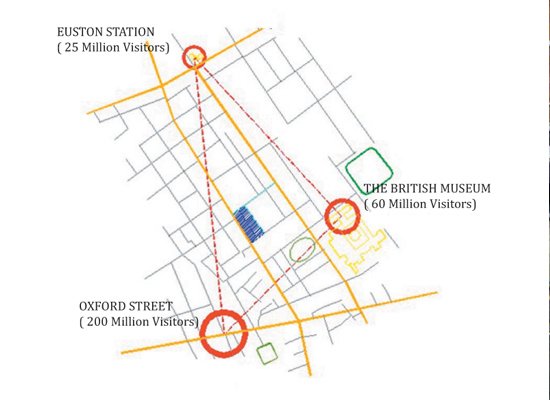 The project was based in the heart of Central London. The objective was to identify the urban issues in a specific strip, and then to locate the most inefficient part in that area, which had the maximum potential to make positive contribution to the surroundings.
