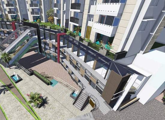 The project is located in the front center of a large under- construction housing complex. The design objective has been to create a mixed use building that attracts retail customers and yet coherently gels well with the existing housing development. The mixed usesection carries on the radial design and symmetry of the housing master plan by incorporating two twin towers that sit on a podium base of retail and recreational amenities. The dexterous unit layouts and floor plans ensure optimization of high FAR thereby achieving more salable dwelling units for the developed. The project is designed as a Gold Rated Green Building