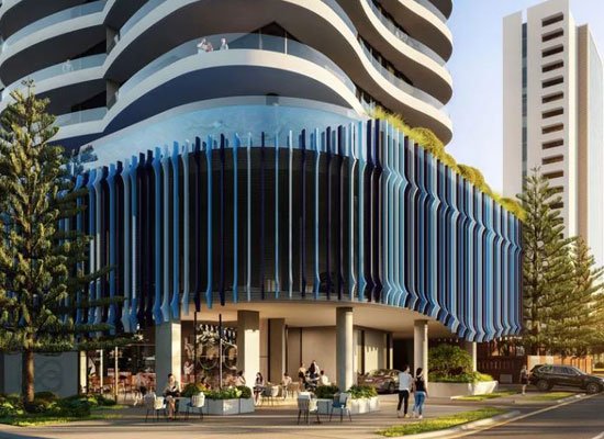 The Infinity Tower is a 40 Floor Tower comprising 60 premium units and retail cafe at ground floor. The residential level balconies are curved to generate the tower form that has been derived from symbol of ‘Infinity’. The podium levels have a significantly complex facade comprising layers of horizontal and vertical louvers.
