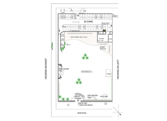 The Client was in possession of a one acre vacant plot earmarked for a housing complex. However, due to recession in real estate, the Client desired that the plot be landscaped for use as a Banquet Lawn in limited budget.